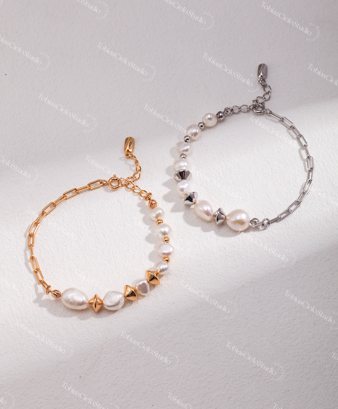 "The Vivaldi" S925 Sterling Silver Baroque Style Bracelet with Ombré-Sized Baroque Pearls