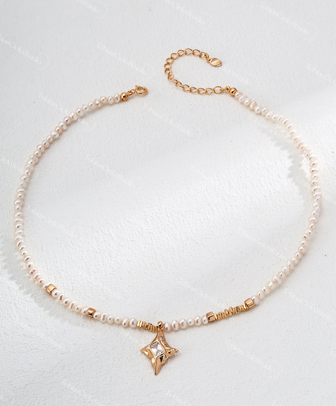 "Celeste's Tear" S925 Sterling Silver Pearl Necklace with Exquisite Star Shape cut Cubic Zircon